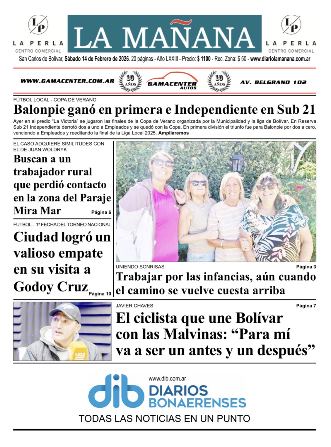 Nota publicada en el diario La Opinión Austral, en su edición del 12 de febrero. El sábado Chaves se embarcaba rumbo a Malvinas.
