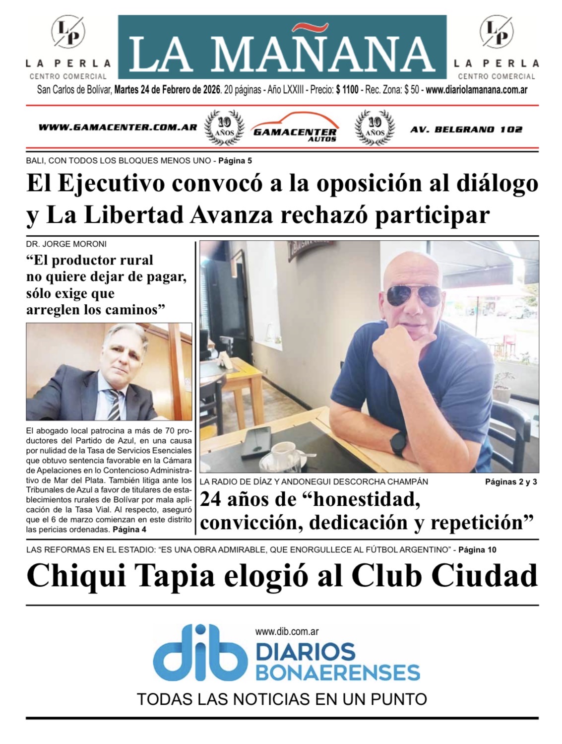 También confirmó el letrado que, en causas que lleva adelante contra la Municipalidad de Bolívar por mala aplicación de los recursos que se recaudan por la Tasa Vial, el Juzgado interviniente ordenó la realización de peritajes técnicos que comenzarán el 6 de marzo.
