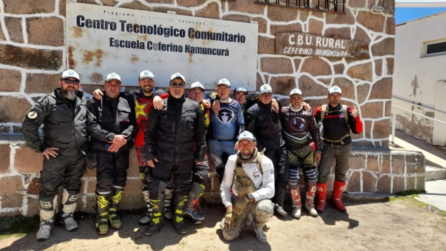 Marcelo siguió con el relato: “Movimos temprano hacia Icho Cruz, Copina, camino de los Puentes Colgantes, también circuito del Rally Mundial; salimos al camino de las Altas Cumbres, bajamos hacia el sur, Parque Nacional Quebrada del Condorito. Teníamos como fininalidad llegarnos hasta una escuelita albergue, Ceferino Namuncura, las más alta de Córdoba, a llevar un presente (lápices de colores, lapiceras, útiles, cartas y dulces) lo cual habíamos cargado en nuestras motos durante tres días. Lamentablemente no podíamos llevar mucho por el espacio que teníamos. Nos presentamos, les dijimos por lo que habíamos llegado hasta ahí, y si aceptaban nuestro ´granito de arena´. Fuimos muy bien recibidos por Marcelo, director del establecimiento, el cual nos contó que concurren a esa escuela 24 alumnos, la mayoría pequeños. Visitamos la capilla contigua y emprendimos el regreso”.