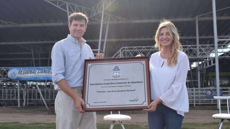 Durante el acto protocolar, la intendenta Marisa Fassi entregó a la Asociación una placa conmemorativa por los 200 años de la llegada de Tarquino a la ciudad de Cañuelas, que es considerada “Cuna de la Ganadería Nacional. Tiziana Prada, presidente de la Asociación de Braford Argentina también entregó un presente al presidente de Shorthorn y representantes del diario La Nación entregaron una pintura de Tarquino.