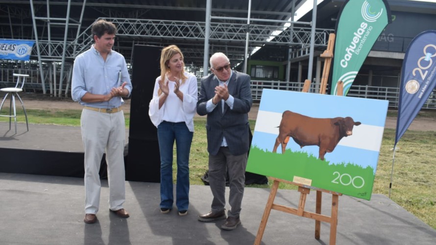 Carlos Juan Guillermo Dawney, presidente de la asociación de criaderos Shorthorn; la intendenta municipal de Cañuelas, Marisa Fassi y Andrés Mendizabal, presidente del Mercado agroganadero de Cañuelas fueron los encargados de las palabras alusivas.