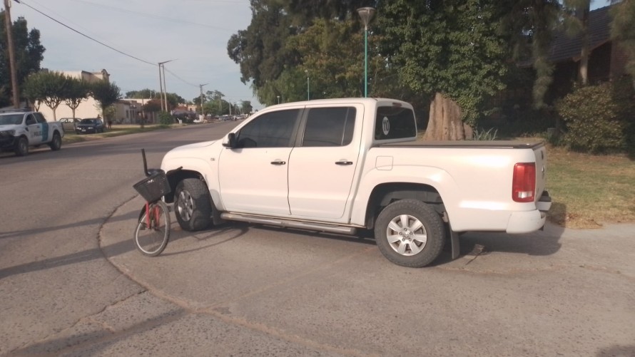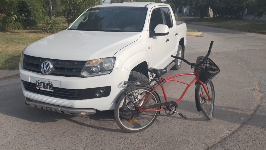 Allí, una Volkswagen Amarok color blanco, dominio KRU 971 y conducido por un hombre impactó contra la rueda delantera de la bicicleta provocándole visibles daños en ese sector.