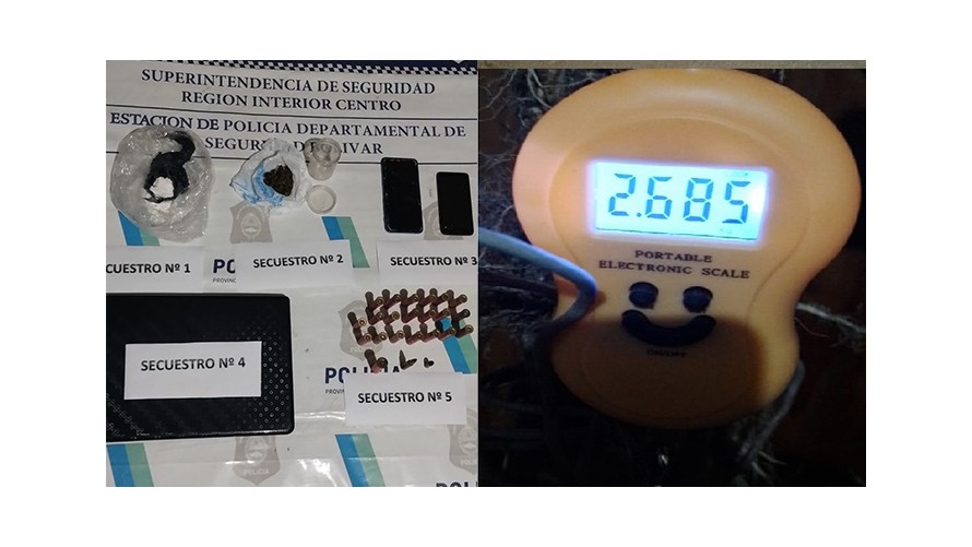 Una medida judicial en una vivienda ubicada en la calle Carlos Gardel, del barrio Villa Diamante, Una medida judicial en una vivienda ubicada en la calle Carlos Gardel, del barrio Villa Diamante, que fue realizada por personal policial de la Comisaría de Bolívar y efectivos del Grupo de Apoyo Departamental (GAD) Olavarría llevó a secuestrar sesenta y dos gramos de Cocaína compacta de máxima calidad, una planta de Cannabis Sativa (marihuana) que pesó dos kilos seiscientos ochenta y cinco gramos y un frasco que contenía flores secas de la misma sustancia. El hallazgo fue comunicado a la Fiscalía N°19 de Azul, especializada en estupefacientes, que, interiorizada de lo sucedido, respaldó el secuestro de las drogas ilícitas, notebooks y de dos teléfonos que serán periciados para avanzar en la investigación de la causa.