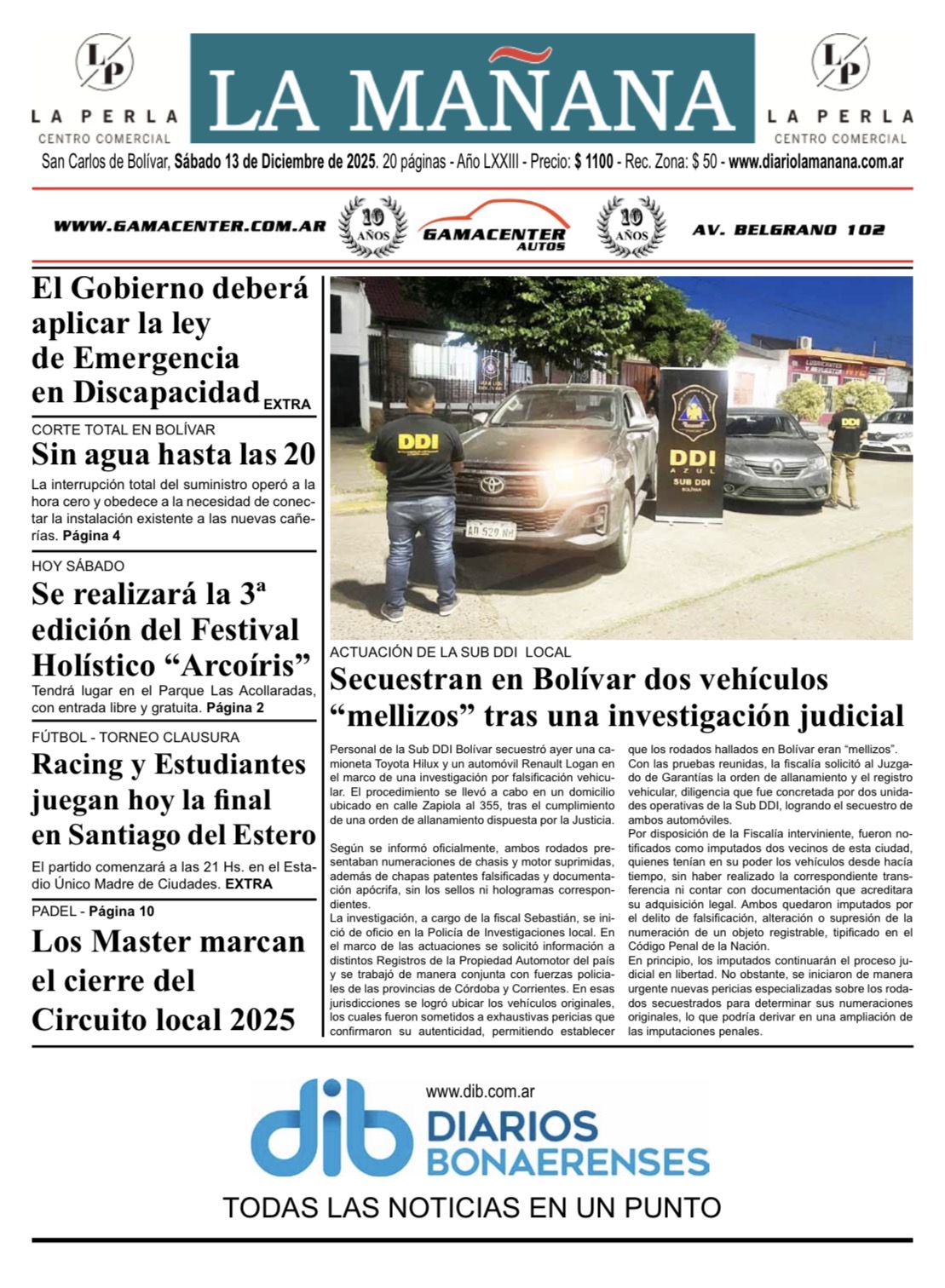 data fiscal  © 2025 | Diario La Mañana | Av. Venezuela 159 | Bolívar (CP 6550)