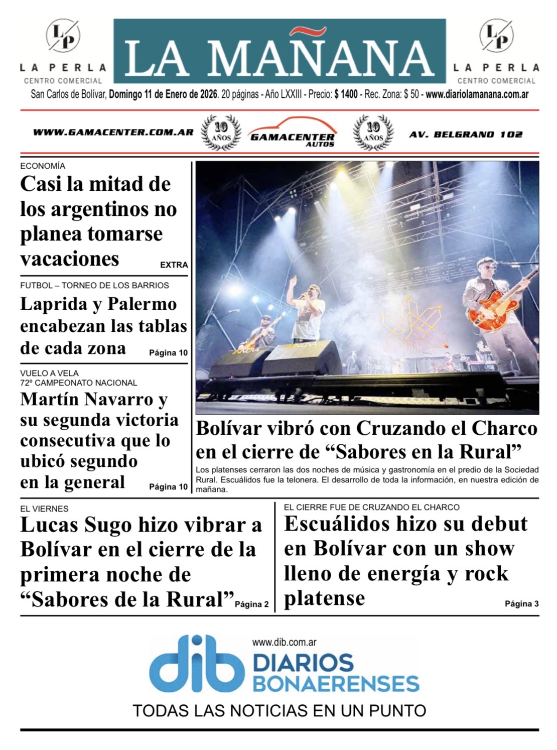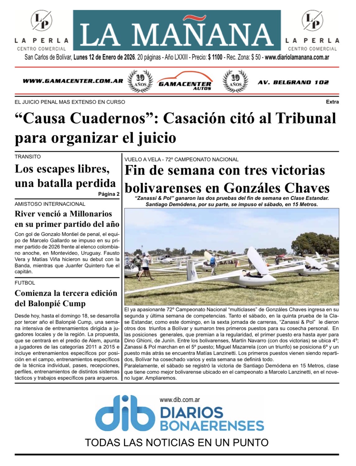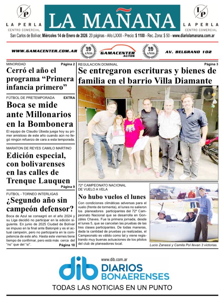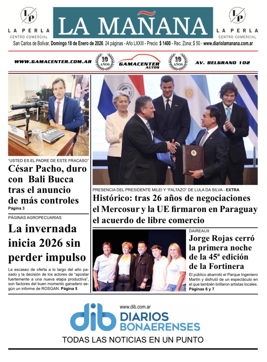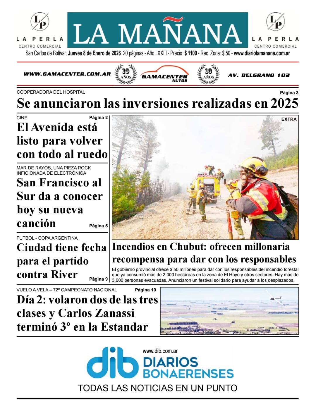 Edición Nº 8080 correspondiente al día 28/01/2026 Inscripto en la DNDA: 75104037 | Propietario: Comunicación y Gestión SRL Director: Victor Agustín Cabreros Domicilio comercial: Av. Venezuela 159 | Bolívar (CP 6550) | Tel: 02314 4 24 600
