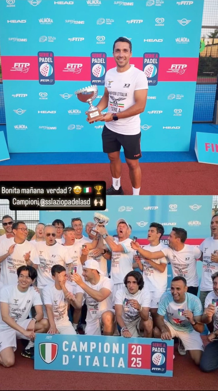 "Venimos de ganar el campeonato por equipos de la Serie A de Italia, donde hace ya unos nueve años que participo. Salimos campeones con un nuevo equipo para mí, ya que el año pasado jugué este mismo torneo para el Milano Pádel y este es justamente el equipo al que ahora le ganamos la final con la Lazio Padel di Roma. Por ese lado contento, pero tuve una lesión; terminé el primer partido lesionado, así que no pude jugar la final. A partir de la lesión hice de coach a los chicos. Obviamente me puso feliz haber ganado con el equipo, pero no así en el plano personal porque me rompí un aductor y ahora tengo treinta días de recuperación.