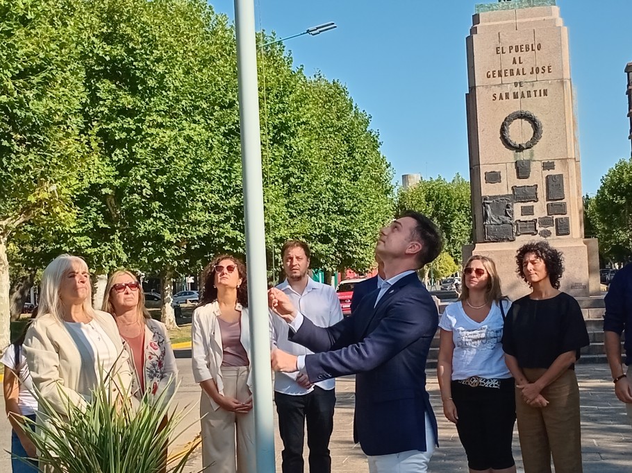 Tras el izamiento de la Bandera nacional en el mástil central, ceremonia que estuvo en manos del intendente acompañado por funcionarios y colaboradores, se hizo lo propio con la bonaerense, en uno de los mástiles ubicados junto al monumento a San Martín. Protagonizaron el segmento Bucca junto a ediles/edilas de todas los franjas con banca en el HCD, es decir César Pacho y Sandra Blanca Santos por La Libertad Avanza; Andrés Porris, María Emilia Palomino, Karina Otano y Nicolás Morán, por las otras fuerzas de la oposición, y Laurita Rodríguez, Karina Bontempo y Mónica Alejandra Ochoa Jaimerena, por el oficialismo. También estuvo allí Franco Canepare. Después, se cantó el Himno Argentino.