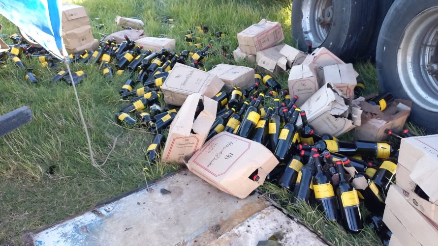 Un camión que viajaba desde Palmira, provincia de Mendoza, con destino a Mar del Plata sufrió un desperfecto como consecuencia del cual volcó el acoplado que arrastraba derramando la totalidad de su carga, integrada por cajas de vino Viñas de Balbo.