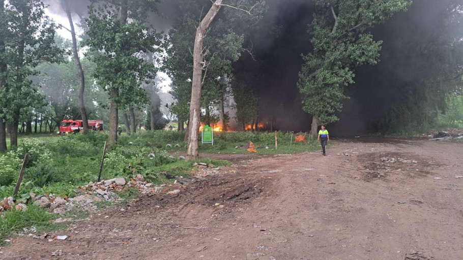 La rápida intervención de los Bomberos Voluntarios evitó que las llamas se extendieran hasta la planta de reciclado.