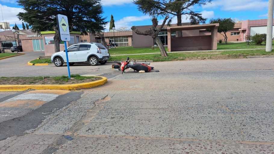 En horas de este mediodía, un joven motociclista que circulaba por la avenida Calfucurá, desde la rotonda en dirección al centro de Bolívar, perdió el control del rodado al pasar por el lomo de burro ubicado frente al Hospital "Miguel Capredoni".