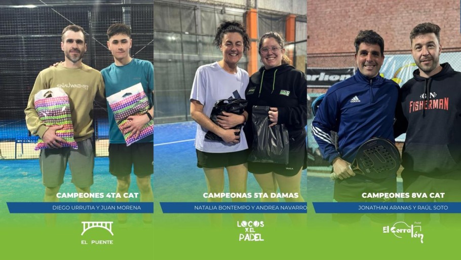La Cuarta categoría se reunió en El Puente, donde Diego Urrutia y Juan Morena se quedaron con el torneo luego de ganar la final en tres sets por 3-6, 6-4 y 7-5 frente a Hernán Elizondo y Agustín Danessa.