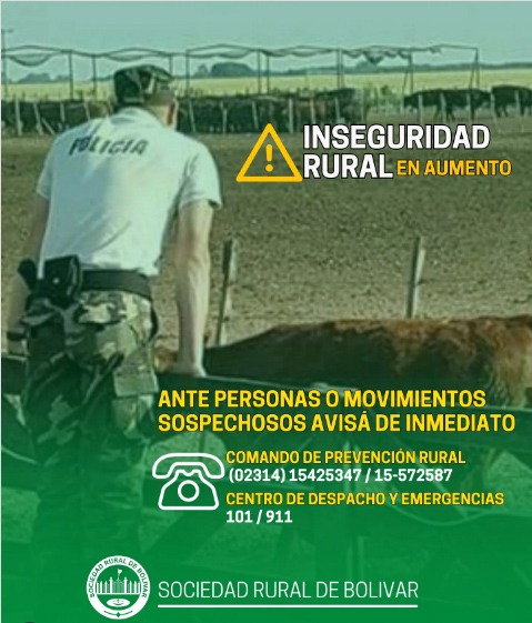 La Sociedad Rural de Bolívar ha sido notificada de distintos hechos delictivos que preocupan seriamente: