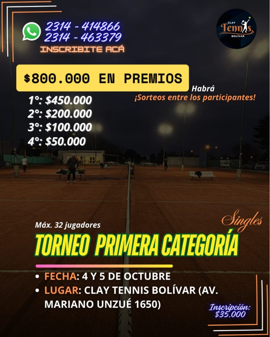 El certamen, organizado por Clay Tennis Bolívar, repartirá $800.000 en premios:
