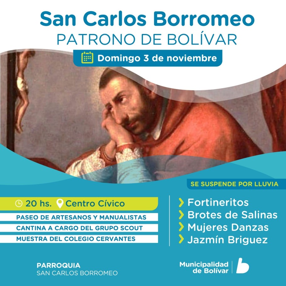 En esta oportunidad la Fiesta de nuestro Santo Patrono, San Carlos Borromeo, se llevará cabo hoy domingo 3 de noviembre.