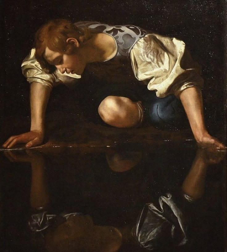 Los relatos míticos son necesarios, ayudan a pensarnos y entender dinámicas profundas en nosotros mismos y con los otros. Es fundamental volver al mito. Pero antes no dejaré de destacar lo siguiente, no siempre las formas transgresivas, como mencionaba Bleichmar, son el efecto de una modalidad narcisista severa. Ella plantea un narcisismo como residuo de la relación amorosa sublimada con el otro. Del orden amoroso. Para comprender esto, retomo lo que señalo como, el carácter sacrificial en el narcisismo. Por eludir afrontar esa administración, ni poder quizás sublimarla, el narcisista se sacrifica. ¿Como lo hace? Hay un libro enriquecedor de la filósofa Florencia Abadi, "El sacrificio de narciso? Propone una visión novedosa para comprender la significación del mito. Rescata la versión de Pedro Calderón de la Barca, su obra dramática "Eco y Narciso". Liríope, la madre de Narciso, lo encierra en una cueva, ya que las hadas han presagiado que corre un gran peligro por su belleza. Narciso se cría junto a su madre, que solo sale a cazar para obtener el alimento de ambos. Hasta que un buen día Narciso la cuestiona ¿Por qué tu no me despides de ti? ¿por qué madre me quitas la libertad? Otro buen día Narciso se escapa, al poco tiempo la madre no lo tolera y muere. Pero Narciso que carecía por completo de contacto con el mundo, encuentra una fuente con agua, es esa imagen que ve, su propia imagen que la confunde con una deidad que vive dentro de la fuente y corresponde a la primera persona que ve a excepción de su madre. Destaca la autora, "Es el aislamiento al que fue sometido -y no la vanidosa soberbia- aquello que lo llevará a la muerte". Consultándole a Florencia Abadi, que con absoluta disponibilidad y humildad me respondió,me comentaba lo siguiente: "Yo insisto que el narcisismo es ponerse como objeto del amor del otro y no como sujeto de deseo" o sea, el narcisista sostiene una imagen a costa de matarel erotismo y el deseo. "Si el amor es cuidado, alianza afectiva, previsibilidad, el deseo en cambio supone rivalidad, desafío, incertidumbre... el deseo curiosea, el amor respeta". Justamente eso que marco como el sacrifico de no administrar, ¿qué cosa? Las posibles consecuencias de lidiar con esa oposiciónentre el amor y el deseo.