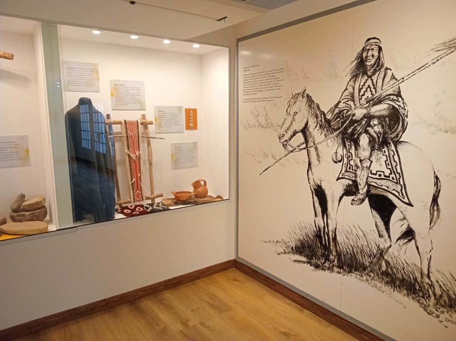 Todo esto, narrado mediante la colección de objetos del museo, que pertenece al Fondo propio. "Por un lado, acá tenemos la Colección Vignau, ese conjunto de líticos tan importante. Se aprecia en el primer pasillo, y da cuenta de aquellas herramientas que emplearon los primeros pobladores que tuvo el continente. Luego hay un espacio que pertenece a los pueblos originarios, en el que se pueden apreciar réplicas de lanzas, de objetos como telares y la ropa que usaban, los objetos de platería y alfarería, y hay toda una colección de boleadoras y también de elementos líticos que se utilizaban entonces para fabricar sus propias comidas, para moler hierbas y demás, como los morteros", enumeró Volpe.